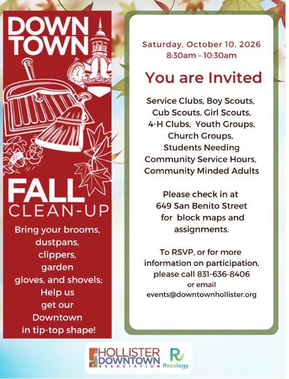 For more information or to participate call 831-696-8406 or email events@downtownhollister.org